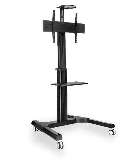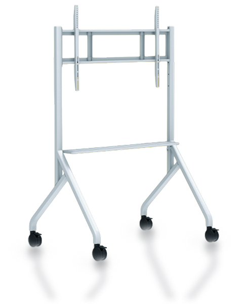 A robust floor-mounted trolley designed for large interactive displays. Built from heavy-duty mild steel, it offers exceptional stability and supports screens from 65” to 98” with a maximum load of 265 lbs — ideal for demanding, everyday professional use.